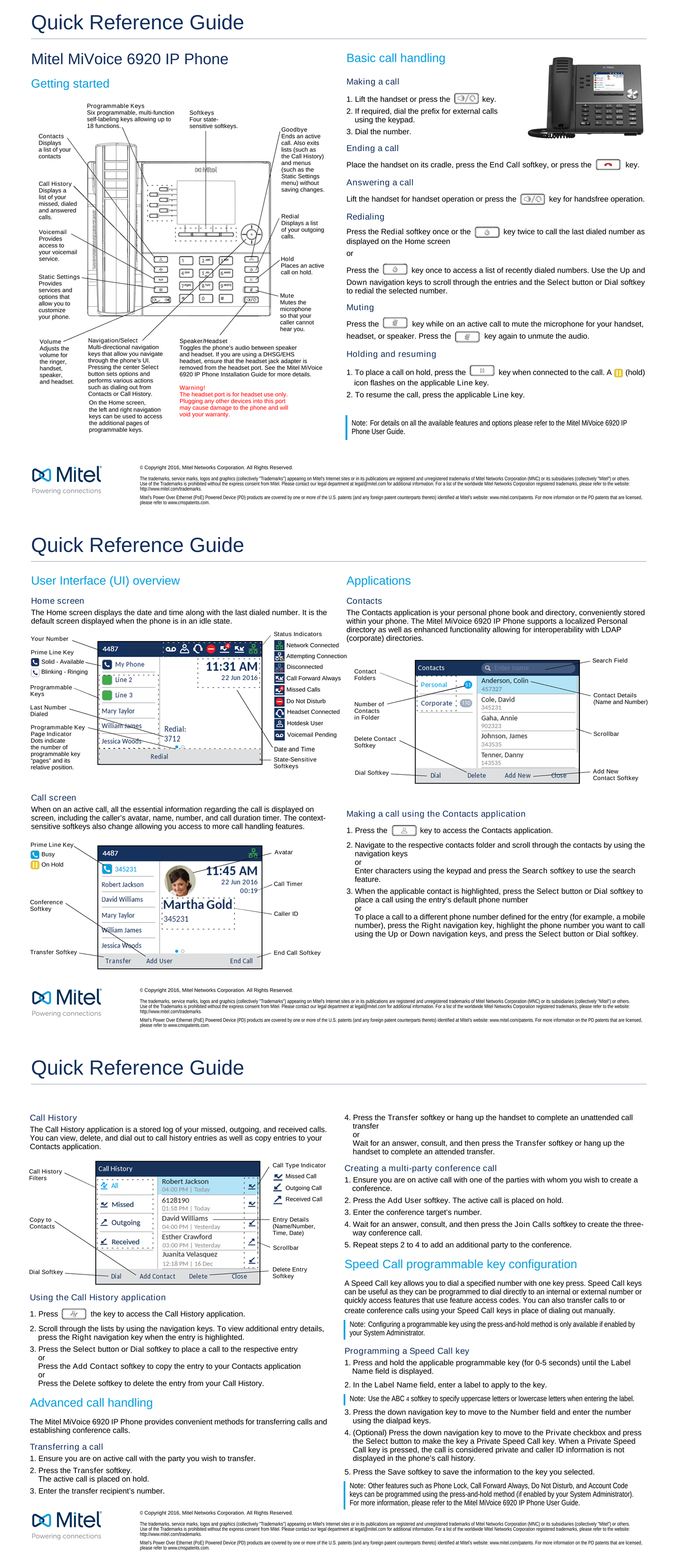 ShoreTel 6920 IP Phone - Quick Reference Guide