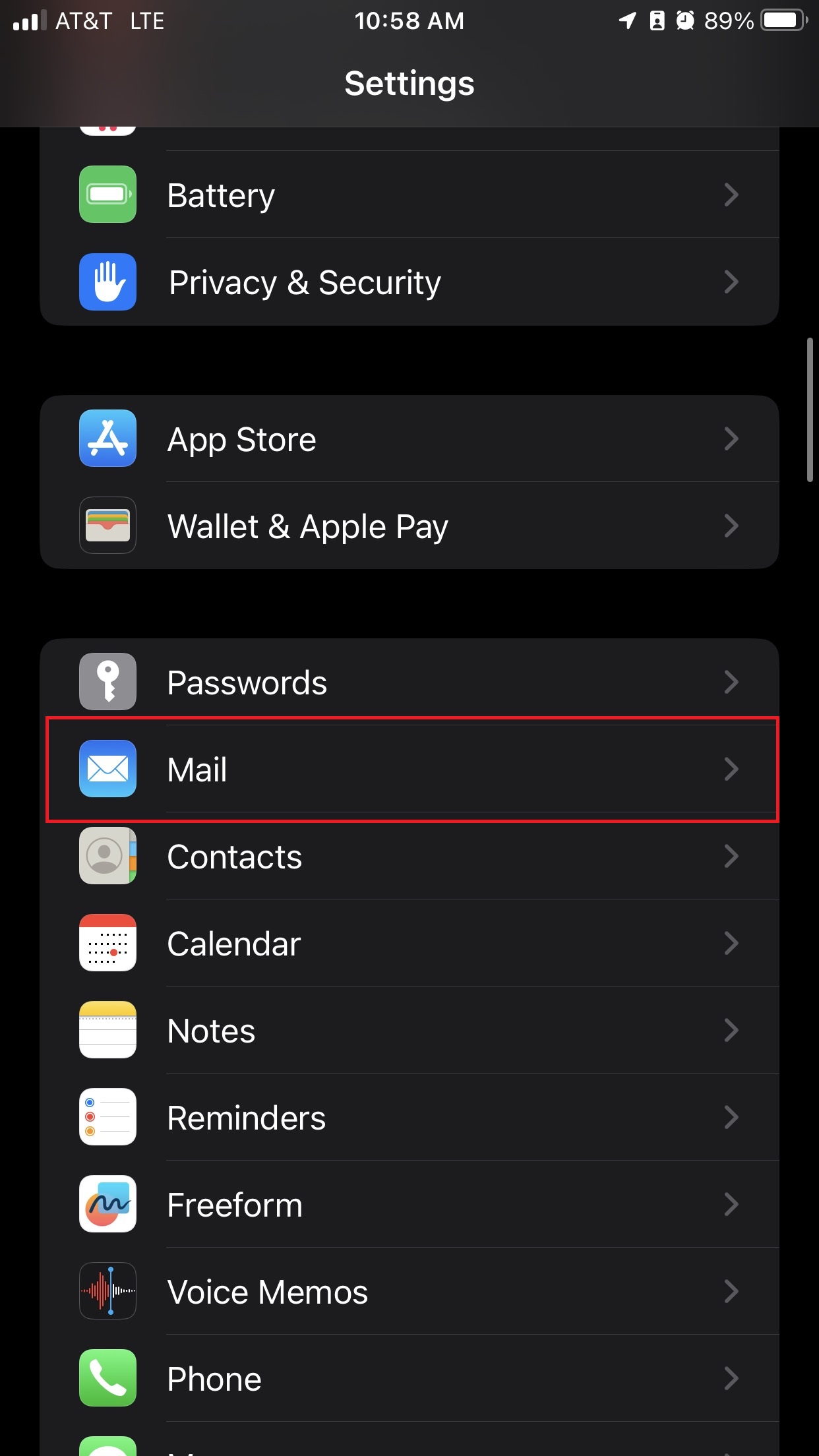 Open Settings app. Depending on the version of your IOS, you may need to select the "All Apps" button at the bottom of your settings page. Select Mail.